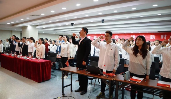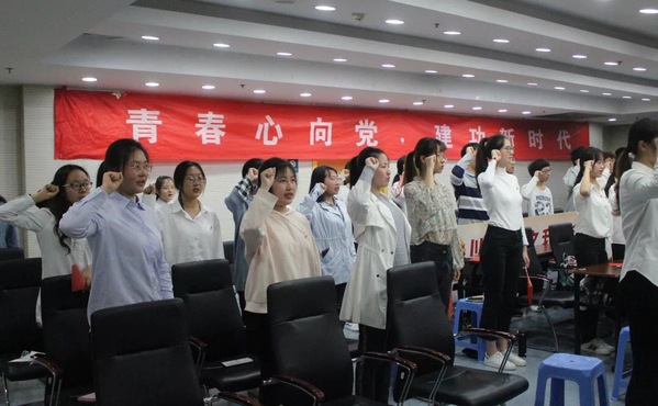 现场师生重温入团誓词。鲜红的团旗擎起一颗颗赤诚的心,醒目的誓词凝聚起不忘初心的信念与力量。全体成员举起右拳,在团旗下接受心灵的净化和洗礼,重温入团时的初心和理想,用饱满的热情、昂扬的斗志表达出作为新时代青年的自豪感与使命感。誓词催人奋进,激发斗志,给人力量!