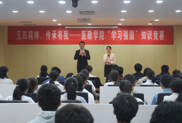 4月28日,南京医科大学医政学院开展“五四精神,传承有我——‘学习强国’”知识竞赛特别主题团日活动,旨在贯彻落实习近平总书记在中共中央政治局第十四次集体学习的重要讲话精神,纪念五四运动100周年,弘扬和继承“五四精神”,弘扬新时代爱国主义精神,激励广大青年不断加强对五四运动和五四精神的研究,引导广大青年在五四精神激励下,为决胜全面建成小康社会、夺取新时代中国特色社会主义伟大胜利、实现中华民族伟大复兴的中国梦不懈奋斗。医政学院全院师生参加。