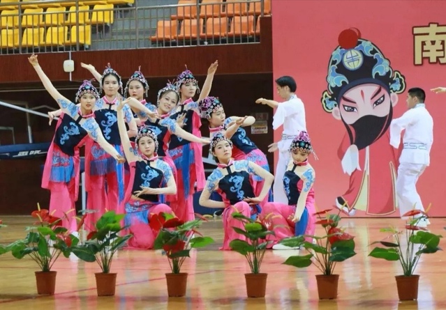 在表演过程中,选手们不仅展现出体操动作的“横平竖直”,也把戏曲身段动作中的“腕花小云手”、“飞天十三响”、“提抬腿”、“亮相”等招式融入整套动作,一招一式,同学们做得惟妙惟肖,表演时而流畅有力,时而婉约柔美,配合着恰到好处的节律,一静一动间尽显戏曲之魂。“自由运动”里,大家发挥想象力,自由展示,将戏曲意韵体现得淋漓尽致。