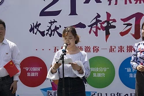 随后全体营员跟随营员代表医政学院丁芸芷、邢朝阳同学,一起宣读《21天成长打卡集训营倡议》。营员们倡议“必将坚持完成集训,必将规范自我行为,努力成为一个无愧于南医教诲,不愧于祖国培养的大学生!努力为南医的辉煌未来,为祖国的伟大复兴而奋斗!”
