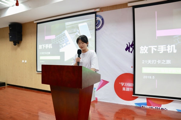“放下手机”集训营医政学院2018级王思义同学说:“我相信,通过这次打卡活动大家都能够养成良好的习惯,遵守大学生日常行为规范,从而走向理想的未来,收获不一样的一番天地。”