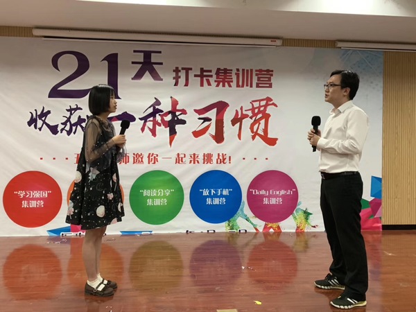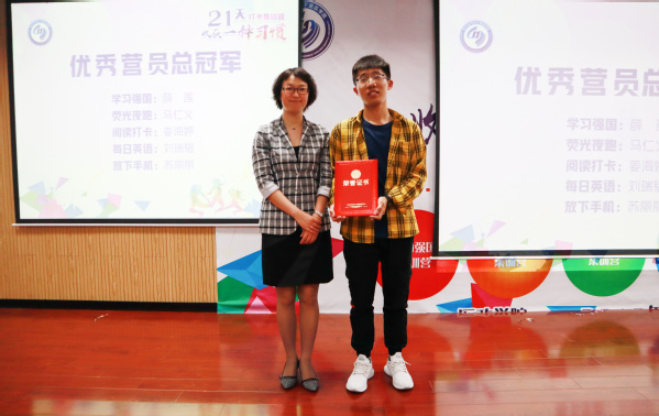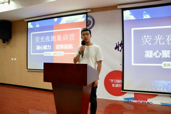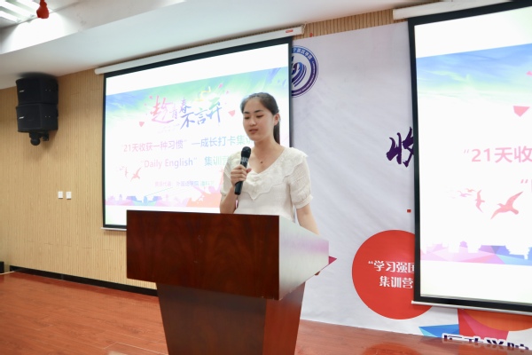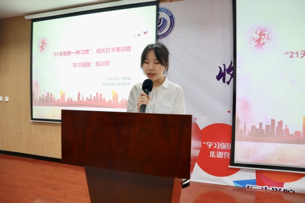 各集训营优秀营员代表发言。21天的成长之旅中,来自不同学院、不同年级的营员欢聚一堂,追求自我完善,实现自我突破、收获志同道合的友谊。“坚持、自律、付出、收获”在每位营员身边围绕;“自信、优秀、开朗、成长”在每位营员的行为中展现。