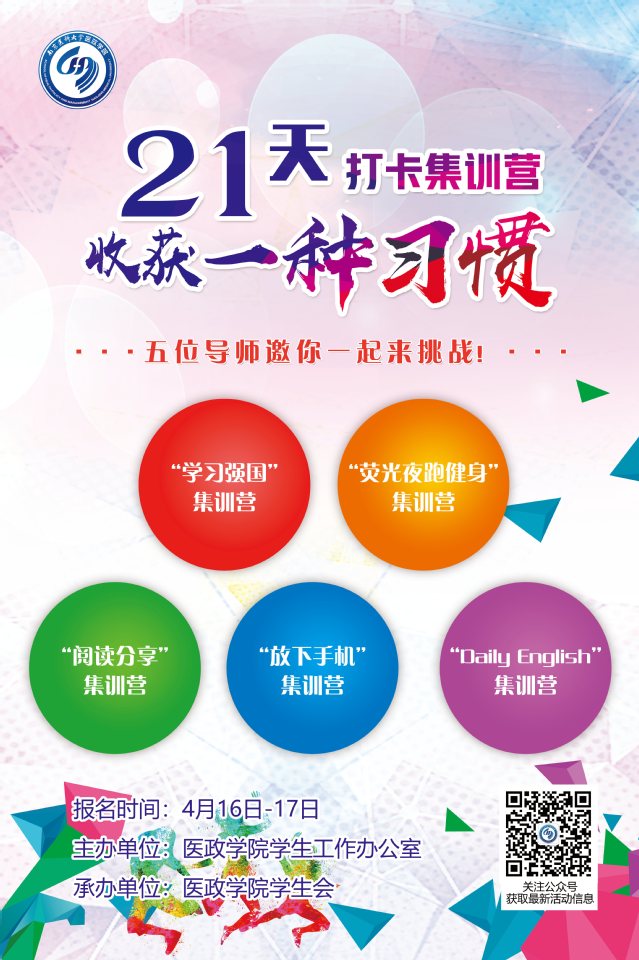 “独学而无友,则孤陋而寡闻”,医政学院5位导师:王建芬、钱东福、王晓丽、陈家应、陈鸣声邀你在“学习强国”、“荧光夜跑健身”、“阅读分享”、“放下手机”、“Daily English”集训营集结。带你一起挑战!