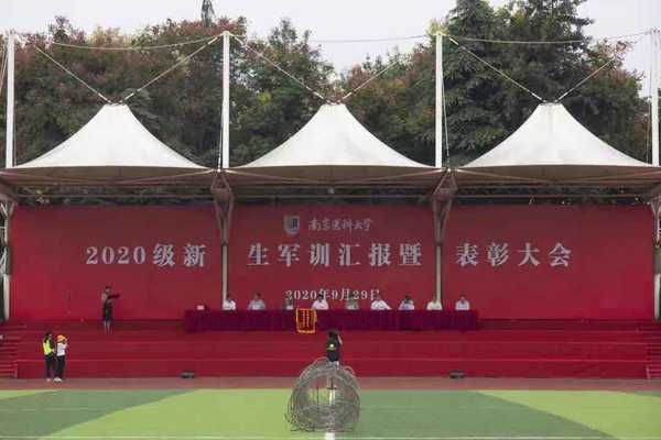9月29日上午,2020级军训汇报暨表彰大会在南京医科大学江宁校区田径场开幕。