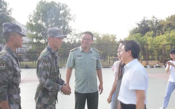 王书记和钱院长在训练场观看了参训学生的训练情况,与承训教官、参训新生亲切交谈,听取承训教官关于军训组织情况的介绍。王书记对承训教官科学施训和严格要求表示了赞扬,肯定了参训学生所表现出来的良好精神风貌。她希望同学们能够在训练过程中锻炼体格、接受挑战,培养吃苦耐劳的精神,将军训的收获贯彻到接下来的大学生活。此外,王建芬书记希望同学们发扬医政学院昂扬向上的精神,展现医政学子的品质与气魄。钱院长首先对承训教官们的辛勤付出表示感谢与敬意。他表示:希望同学们珍惜集体生活,用心感悟军训精神,增强组织纪律观念,在大学“第一课”中练就本领、学出特色。