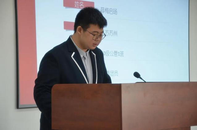 20级公管2班的顾磊同学有一颗热忱的心。他在思想上求上进,在实践中求务实。他工作踏实、乐于助人、成绩优异,谈吐间体现他的风趣与自信。