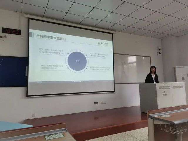 随后,重点介绍了国家安全、财产安全和校园安全问题。在国家安全方面要做到保护国家秘密,维护国家安全。在财产安全方面,建议同学们做到随手关门;贵重物品随身携带等。之后,向大家强调了校园安全、防灾减灾工作的重要性,告诫大家要高度重视自身安全与国家安全。