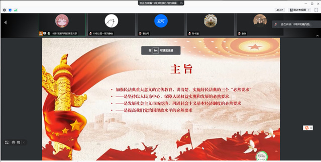 通过本次班会,同学们认识到了民法典是人们用来实现权利,维护权利的有力武器,也是一国世俗社会生活的百科全书。希望大家共同构建形成遵法、学法、守法、用法的良好氛围。