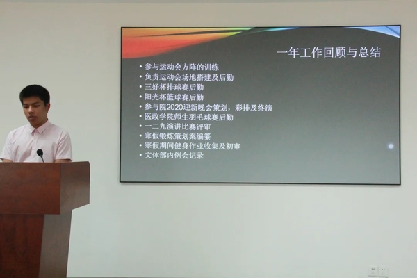 2021年5月21日下午14时30分,医政学院于明达楼k320教室举行了学生组织部门负责人述职大会,学生组织主席团与各部门学生骨干代表担任评委,各部门负责人上台述职,会议由学工办李敏老师主持。