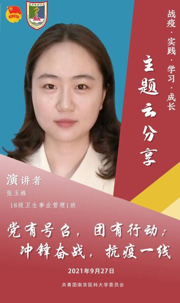 9月27日,由2018级卫生事业管理1班张玉姝同学带来“战‘疫’·实践·学习·成长”主题云分享——《党有号召,团有行动;冲锋奋战,抗疫一线》。