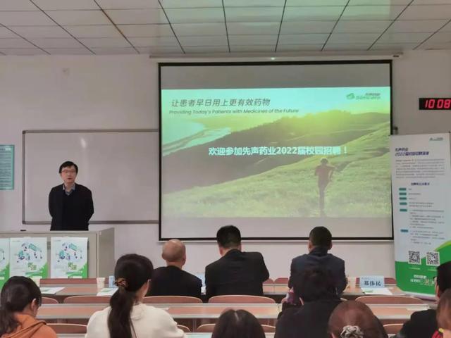 先声药业江苏自身免疫大区经理赵越从高速发展的行业现状与持续增长的市场规模着手,向同学们展示了行业的未来发展,从使命感、开放、让员工感知公平更快成长和有趣四个方面对先声药业进行了深入介绍,分享了自己有温度的职业体验。并从研发、生产、营销三个角度,鼓励同学们加入先声,实现不一样的可能。