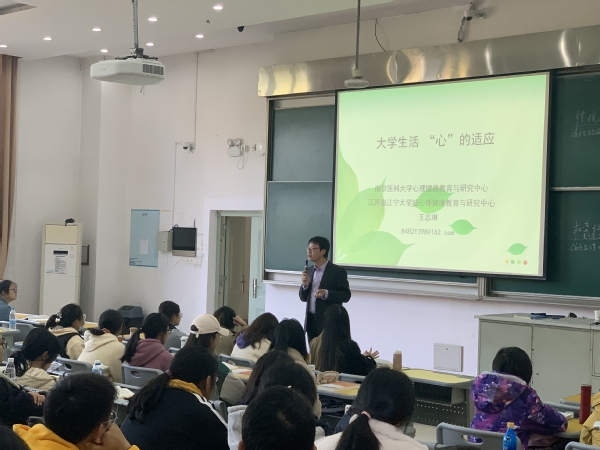2021年11月10日上午,南京医科大学心理健康中心王志琳主任面向全体21级医政学院新生,宣讲了一场以“大学生活‘心’的适应”为主题的心理健康教育讲座。