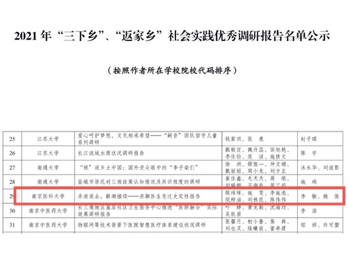 热烈祝贺我院“赤路医行”暑期实践团队荣获团中央“2021年‘三下乡’、‘返家乡’社会实践优秀调研报告”!