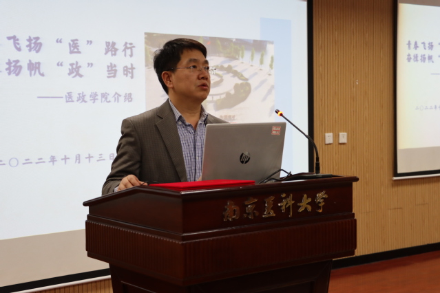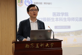 医政学院副院长陈鸣声介绍本科生导师制度并宣读《2022级本科生导师名单》。陈院长从本科生导师的任职资格、导师和学生的要求、工作成效等方面进行了详细的介绍;陈院长希望同学们主动与导师联系,征询导师的指导和帮助;以积极认真的态度,参与导师确定的各项活动。
