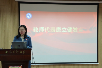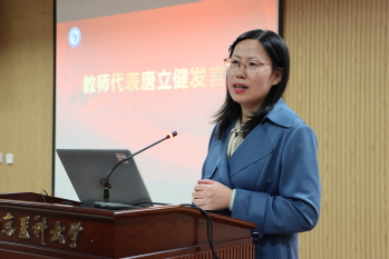 唐立健老师作为教师代表发言。她说,进入大学生活,是同学们进入了另一个披荆斩棘的阶段。大学生活并不是轻松的,“躺平不可取,躺赢不可能”,希望同学们在四年的大学生活中找准方向、明确目标、做好规划、脚踏实地地走好每一步。除此之外,唐老师也鼓励同学们积极参加社团活动及社会实践,注重锻炼,保持身心健康。医政学院的所有老师始终是同学们最坚强的后盾。