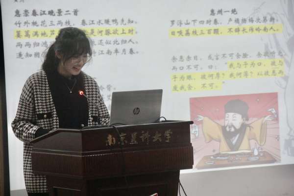 林老师作总结点评。他指出,读书的意义不仅是自身成长的过程,更是为中华之崛起而读书,作为新时代大学生要怀有使命感、责任感;他叮嘱同学们,要将精读和泛读相结合,多读书、读好书、读经典;他强调,读书是一次文化大餐,要在了解作者经历和创造背景的前提下,边读边思考,从中汲取养分。林老师还建议同学们,在成果展示过程中要注意PPT字体的大小、时间的控制以及语言的表达。
