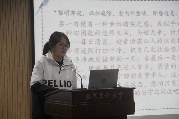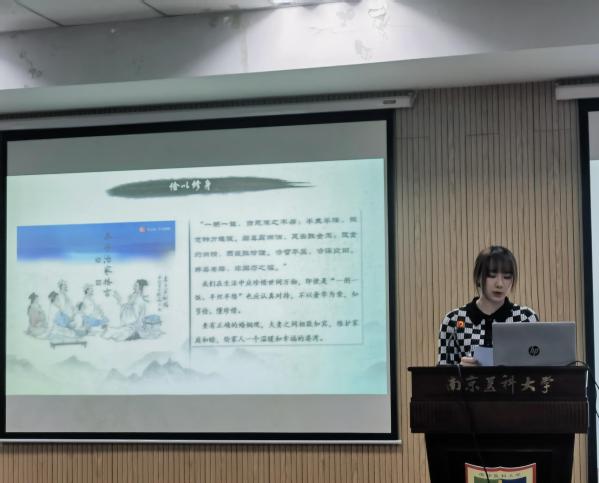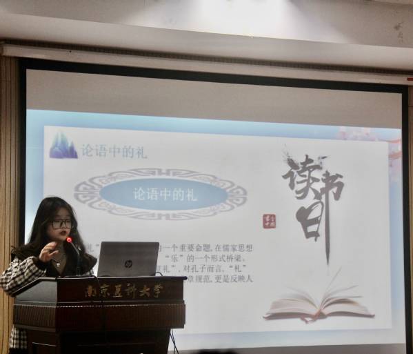 医疗保险班薛雅馨以“书香中国”为题,介绍了我国经典著作《论语》。她将《论语》中的经典语句与现实生活结合为同学分享人生智慧,发人深省,并以“礼”作为主要论点,阐释“礼”的重要性与实际运用。