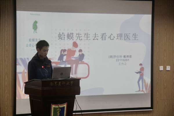 卫管2班王允之同学介绍了英国心理学家罗伯特·戴博德创作的心理学著作《蛤蟆先生去看心理医生》,本书通过陷入抑郁的蛤蟆先生和心理医生苍鹭的互动,探索蛤蟆先生爱炫耀、自卑性格和抑郁情绪的来源,指出童年经历对人格产生的深刻影响,并阐释如何在心理上实现真正成长。王允之同学发此感悟“聪明的人,都懂得将自己的人生调整成节能模式,心往宽处安,事往好处想,目光往远处看,才能翻越心底的大山,步履轻盈地走向远方。”