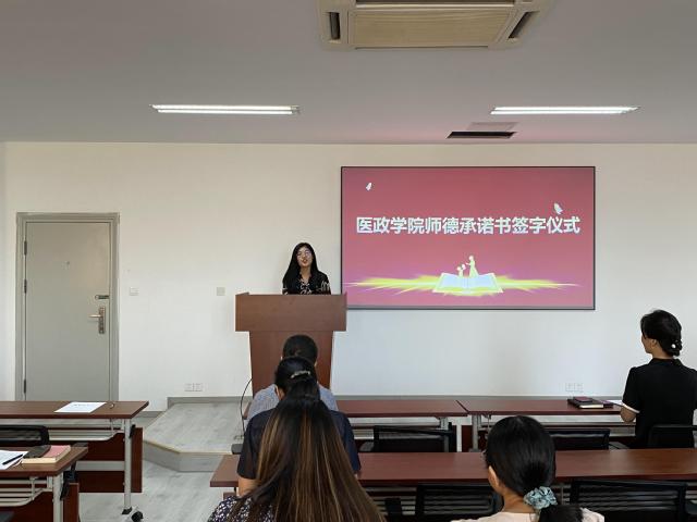 9月8日,为庆祝教师节,医政学院举行教师节庆祝活动--医政学院科研创新团队成立暨新教工师德承诺书签字仪式。全体院领导及教职工参加活动。仪式由王建芬书记主持。