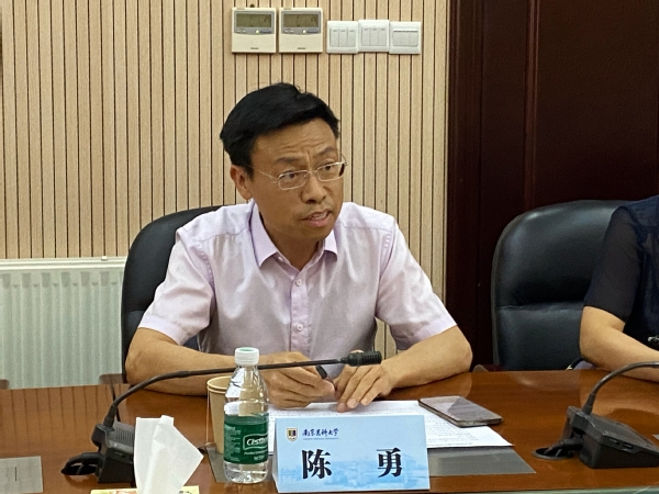 陈勇书记致辞,他简要介绍了学校、学院和专业建设情况。陈书记希望通过本次交流会,与新华保险公司江苏分公司建立联系,找到更多的合作空间,为同学们提供更多的实习和就业机会。