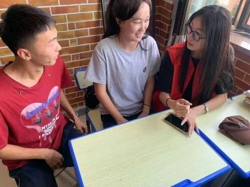 在学校,成员们为不同学习阶段的学生进行了针对性地答疑解惑。针对小学阶段的学生成员们督促他们完成课业,为他们点明学习中重点、难点,解答疑问。针对中学生,成员们会更多地与他们交流学业规划。成员阿依比克说:“作为学生我们很能理解中小学生的课业压力。与此同时,学业方面的交流也有助于我们自身发展,帮助他们就等于帮助我们自己。”