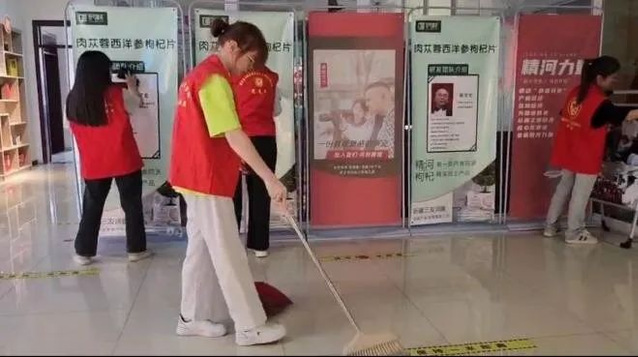 实践团成员与其他学校返乡学生一同扎进清扫公共设施,环保卫生服务工作中,希望以自身微薄之力改善居住环境卫生。看到通过自己的劳动社区环境被改善,大家心中也多了一点成就感。