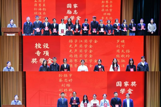 在国家、学校和社会的大力支持下,同学们得到了诸多获得奖学金的机会,现场领导和老师为一年来表现突出的同学颁奖,包括获得校长奖学金、国家奖学金、国家励志奖学金以及扬子江、先声、奥赛康等专项奖学金的同学。