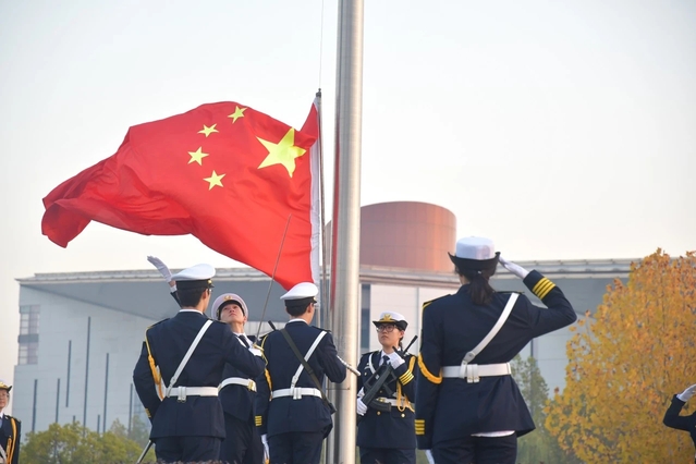 升旗仪式于7点准时开始,旗手们迈着整齐有力的步伐护卫国旗入场。在庄严的国歌声中,五星红旗冉冉升起,全体师生行注目礼,现场气氛庄重而肃穆。