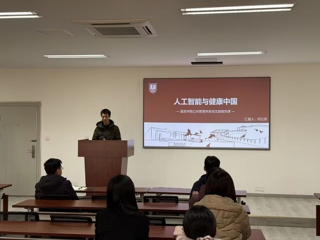为深入学习贯彻党的二十届三中全会精神,探讨人工智能在健康中国建设中的创新应用,医政学院研究生党支部于2024年12月6日集中学习了《人工智能与健康中国》主题微党课。本次微党课由医政学院公共管理学系党支部邓立宗老师主讲。