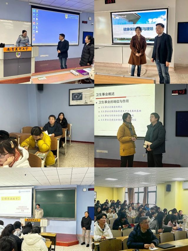 全体学院领导、教研办和学工办老师分赴各教室,对《卫生事业管理学》《病案管理》《管理基础数学2》《卫生财务管理》《健康保险核保与理赔》等课程展开巡查。重点关注教师到岗情况、教学资源使用、学生到课率及课堂互动质量。巡查组发现,所有授课教师均提前到岗,教学材料齐备,学生到课率100%,课堂互动质量高。