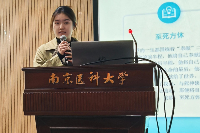 2023级卫管2班的周忆梦同学以“仁心——聆听花开的声音”为题,介绍了斯蒂芬·韦斯塔比的作品《打开一颗心》。“先天性心脏病让数万个不幸的家庭何去何从?”这让她联想到我校的心佑工程,跨越16个省份,救助了一个又一个孩子。周忆梦同学从中看到了生命的脆弱与顽强,更在医学工作者为人类健康保驾护航中看到了未来的希望。