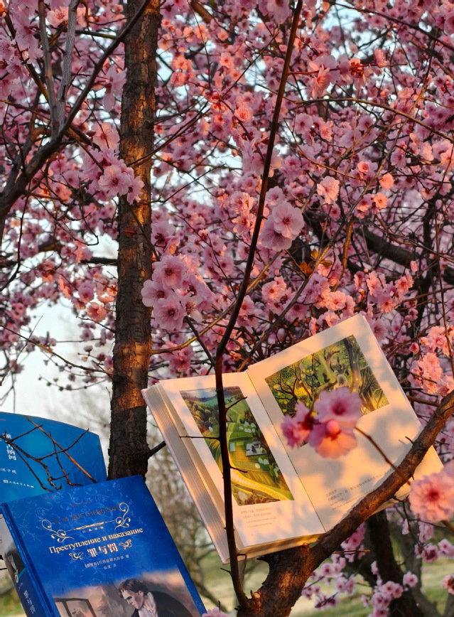 春日繁花盛开,粉嫩的花瓣缀满枝头,尽显生机与浪漫。阳光洒落,给花朵和书本披上一层暖光,营造出静谧美好的氛围。这一刻,文学与自然交融,仿佛时间都为之静止,让人沉浸在这诗意的画面中,感受阅读与春光带来的心灵慰藉。——梁晚亭