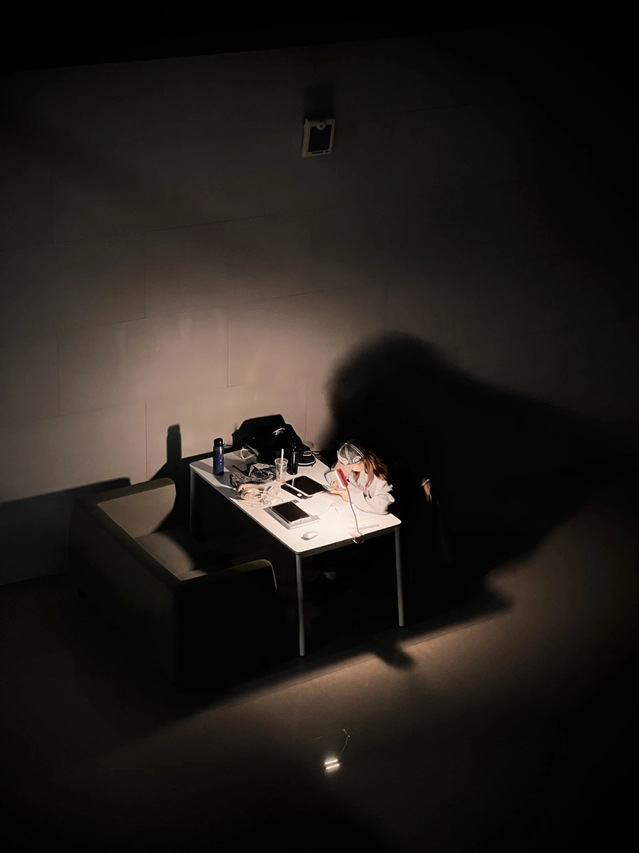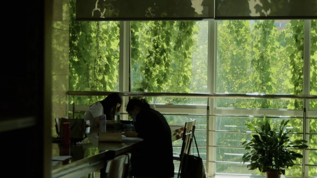 以图书馆为场景,层层书架如迷宫般延伸,营造出类似《盗梦空间》中交错的空间感。通过对图书馆多个场景的拍摄,光影变幻,仿佛穿梭于现实与梦境之间,展现出知识世界如同梦境般深邃、神秘,引人不断探索。——何云浩