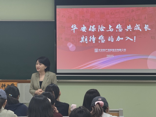 9月29日,医政学院于博学楼A307举办华安财产保险公司校园招聘宣讲会。宣讲会由张华副书记主持,全体26届毕业生参保险公司人力资源部陈冰清女士对企业进行了宏观介绍。华安财产保险公司在全国31个省、市、自治区开设分公司,下辖机构近千家。同时,华安财产保险公司也是中国保险行业协会理事单位、中国保险协会理事单位、亚洲金融合作协会创始协会成员之一。华安财产保险公司主要经营各种财产险、责任险、信用保证险、农业险、意外伤害险、短期健康险和再保险业务。