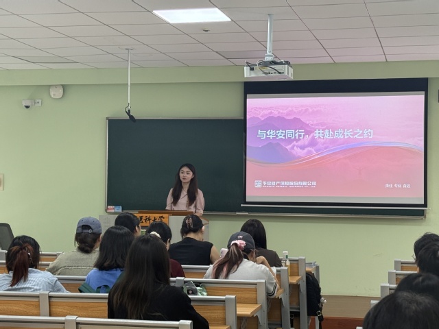随后,华安财产保险公司人力资源部员工从华安财产保险能为同学们提供的发展平台以及平安公司的招聘要求及流程两个方面介绍了华安财产保险公司2025-2026校园招聘计划。华安财产保险公司为新进大学生量身设计“春蕾计划”,由用人部门、条线部门、人力资源部门及指导人对春蕾进行多阶段个性化的跟踪培养,通过线上赋能提升、基层轮岗培养帮助应届学生尽快适应和融入公司。