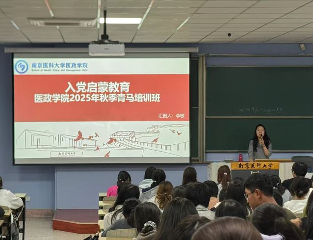 为加强新生思想政治引领,规范党员发展工作流程,2025年10月16日下午,医政学院在明达楼120教室举办2025年秋季青马工程培训。培训第一讲暨入党启蒙教育会,由辅导员李敏老师主讲,医政学院全体2025级新生参加。