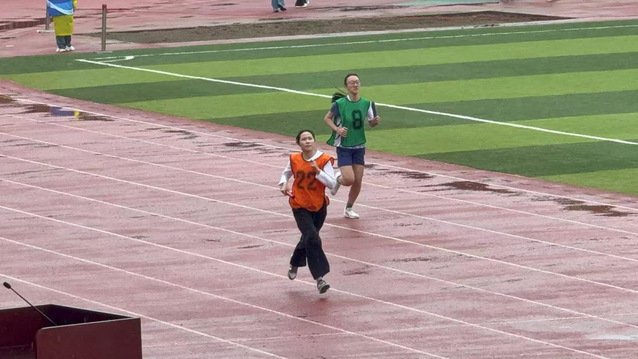 田赛场上,跳高选手在雨中一次次腾空而起,湿滑的场地增加了挑战,却让每个成功的过杆更显珍贵。赛场硝烟弥漫,我院健儿们力争上游,潘可欣同学在女子跳高中获得第七名的好成绩。