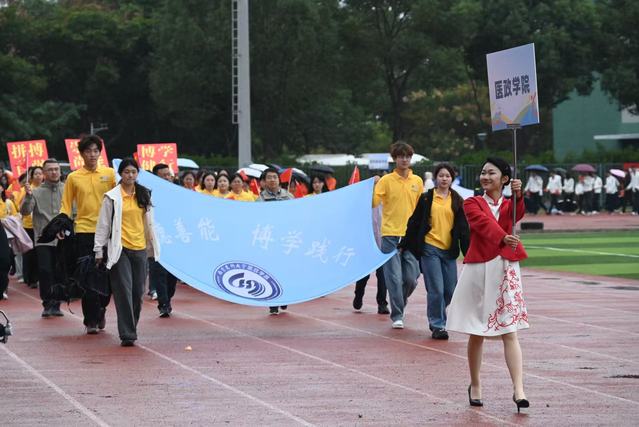 细雨淅沥,却浇不灭运动的热情。开幕式上,各方阵学子意气风发,充分展现了南医学子朝气蓬勃、昂扬向上的精神风貌。我院师生步伐整齐、精神抖擞,以庄重的形式走过主席台,融入整个运动场的蓬勃气象之中,赢得了现场的阵阵掌声。