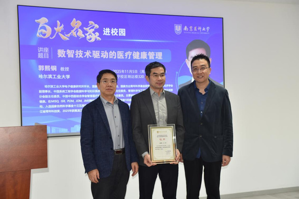 11月5日,2025年南京医科大学“百大名家进校园”系列学术讲座暨学院第十一期天元管理沙龙在明达楼320教室举行。哈尔滨工业大学郭熙铜教授受邀为我校师生带来了主题为“数智技术驱动的医疗健康管理”的学术报告。医政学院钱东福院长、科研院规划处周其冈处长及师生代表出席了本次讲座。