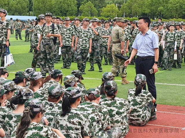 秋阳杲杲,金风送爽。九月的训练场上,一抹抹迷彩绿成为校园里最靓丽的风景线。2025级新生们正在经历大学第一课——军训,他们用挺拔的军姿、整齐的步伐、响亮的口号,书写着青春的誓言,展现着医政学子的飒爽英姿。9月22日,医政学院党总支书记陈勇,副书记副院长张华,学工办辅导员李敏踏着秋光而来慰问军训教官和2025级新生。
