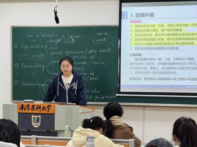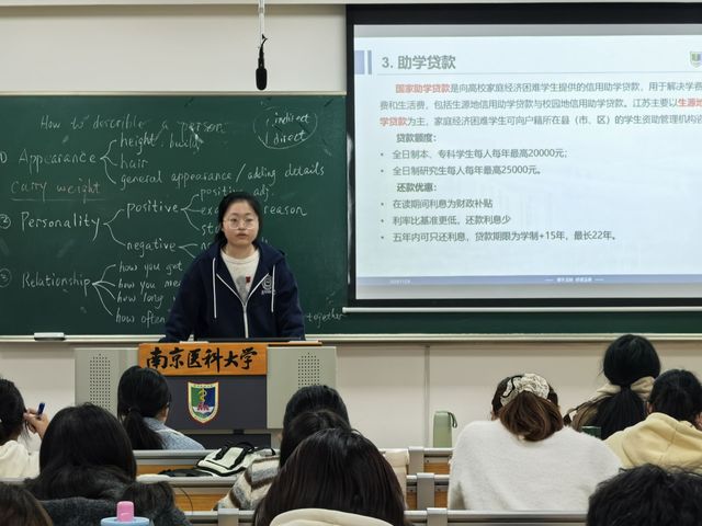 首先李志远同学聚焦助学金、助学贷款及困难补助等保障性资助政策,为新生构筑温暖保障网。他详细介绍了国家助学金的申请流程和资助标准:“学生每年9月通过江苏学生资助公众号申请,资助标准为2500-5000元/年,平均可达3700元。”他还特别讲解了助学贷款政策:“每年最高可申请20000元,就读期间免息,还款方式灵活,这为家庭经济负担较重的同学提供了重要支持。”此外,他还提到学校设有勤工助学岗位,鼓励学生在劳动实践中锻炼能力、自立自强。