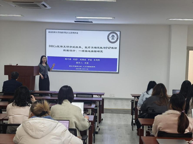 为助力师生深化对医保支付方式改革的理解,精准把握医疗服务管理前沿动态,12月11日,我院特别邀请浙江中医药大学人文与管理学院刘莹老师开展题为“DRGs医保支付方式改革、医疗不确定性与P4P激励机制设计:一项实地实验研究”的专题报告。本次沙龙由医政学院院长钱东福教授主持。
